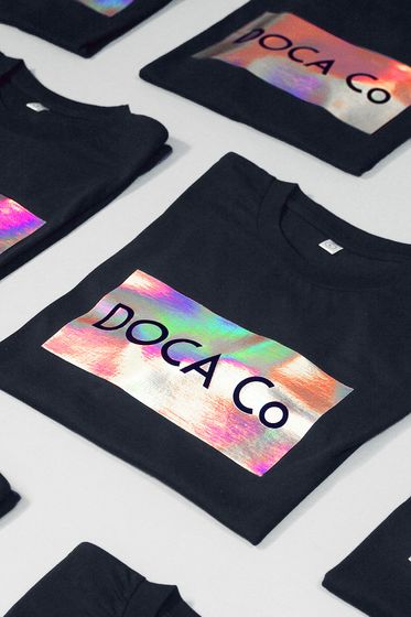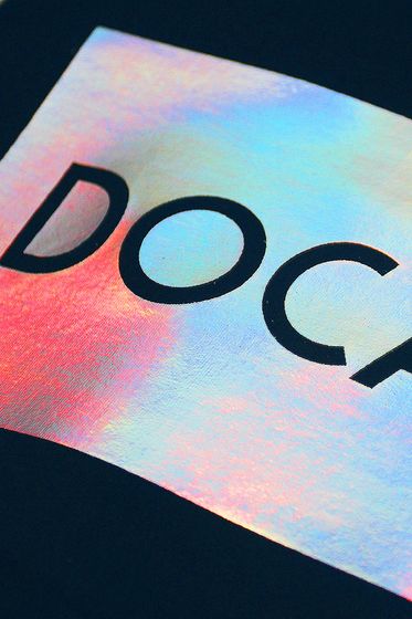 Футболка, которую участники надевают сразу. Черная базовая модель, one-size и удобная. Голографический принт переливается на свету и ловит внимание в камере — отсюда яркие фото и нужные охваты в соцсетях. Такой спецэффект помогает выделить людей на фестивале без сложного дизайна.