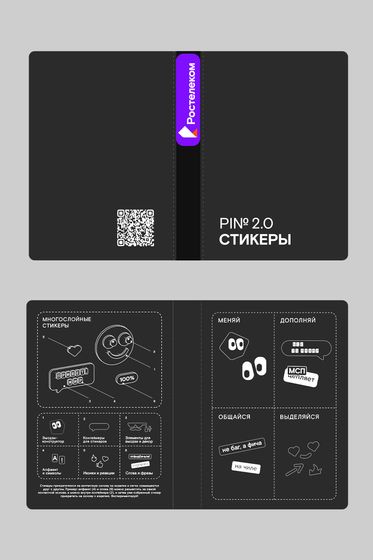Стикеры-эмодзи и корпоративные фразы собраны в компактный стикербук — аккуратная, многоразовая упаковка, где всё лежит по страницам. Формат создан под корпоративный мерч для бизнеса: легко комплектовать, быстро раздавать, удобно использовать стикеры.