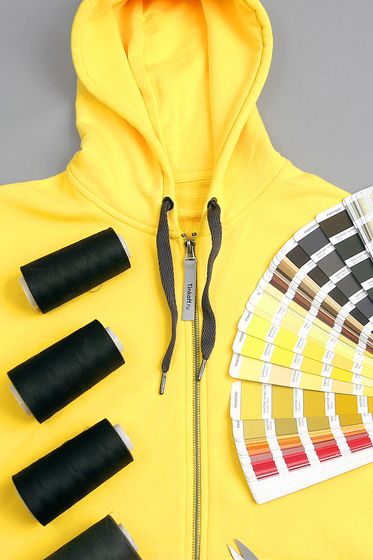 Бейку на молнии окрашиваем в точный фирменный оттенок. Весь тираж выглядит ровно: единый цвет,